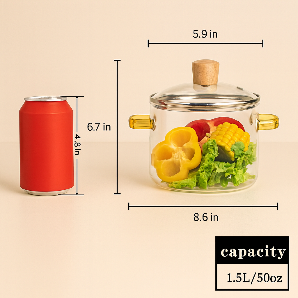 1.5L Clear Glass Simmer Pot with Lid – Heat-Resistant
