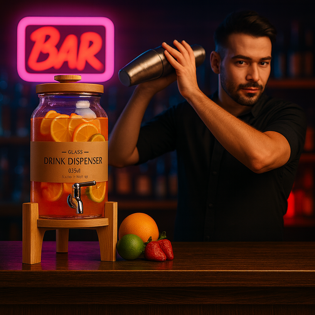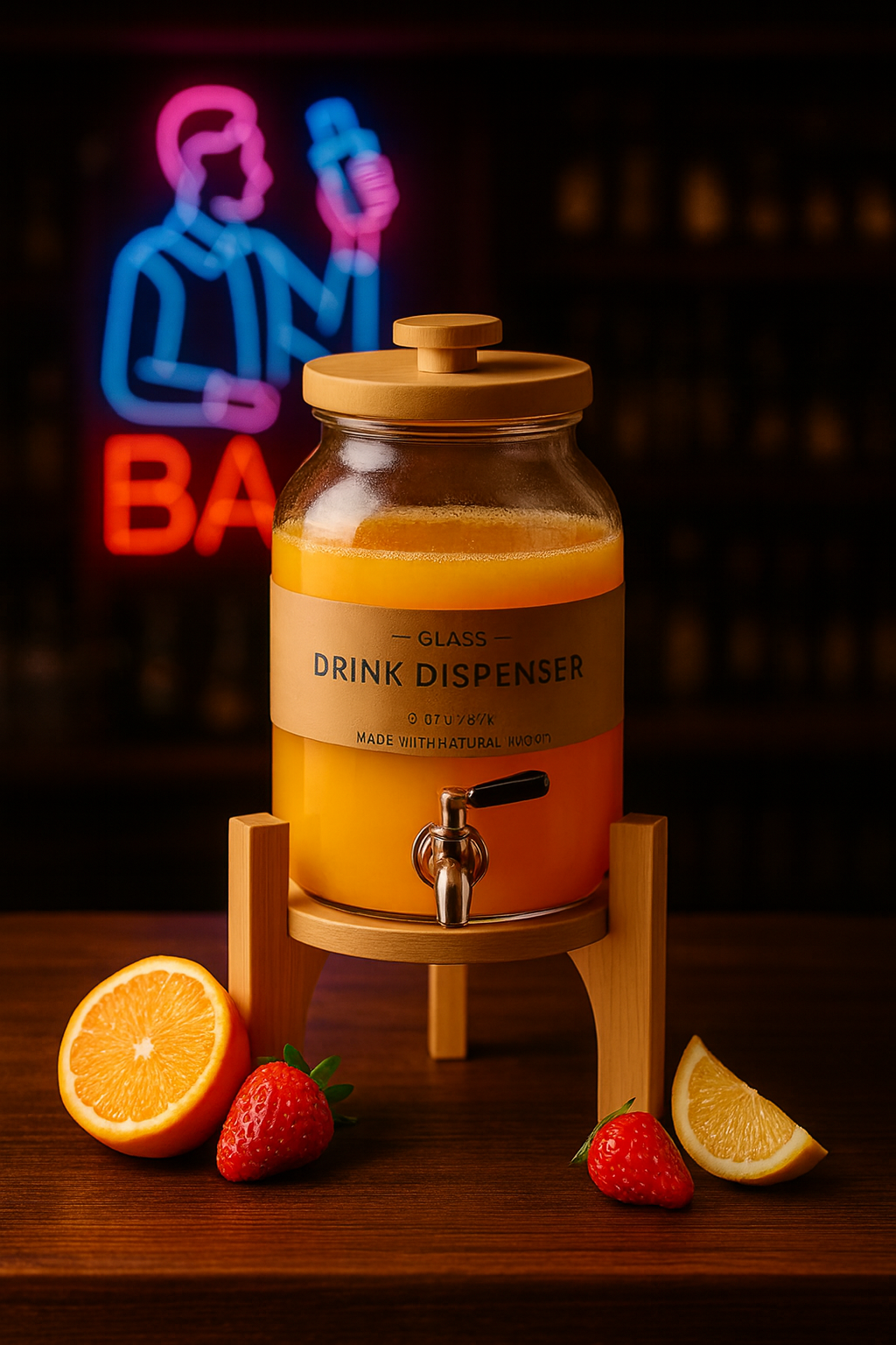 4L Glass Water Dispenser with Wooden Tap & Stand – Leak Proof