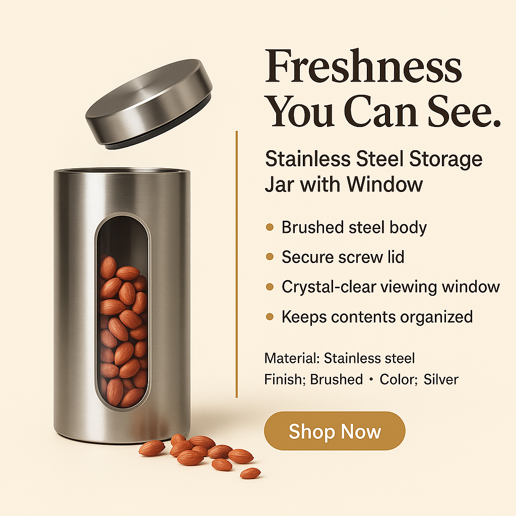 Keep your pantry organized and your food fresh with this sleek and durable food storage container. Made from brushed stainless steel, it's resistant to rust and stains, ensuring long-lasting use. A clear oval window lets you see the contents at a glance, so you'll always know what you have and when you need to restock